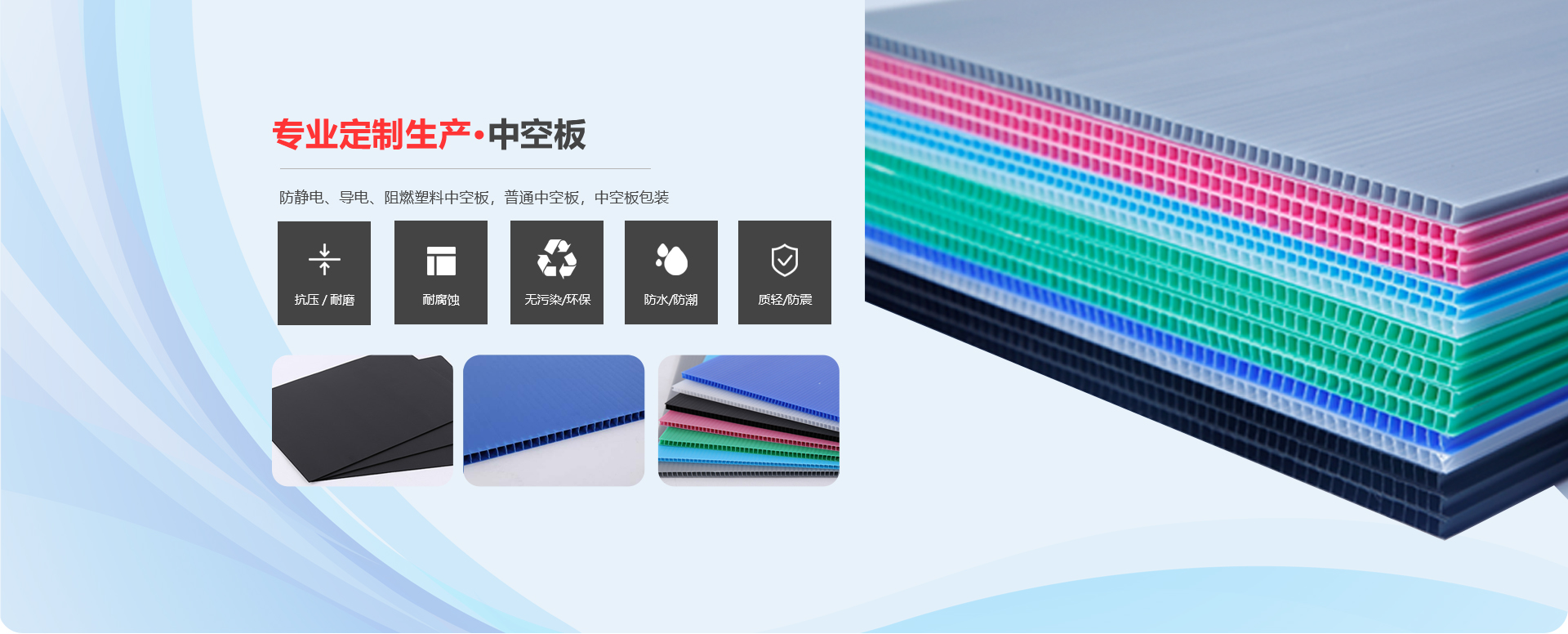 我司專業生產銷售圍板箱、防靜電、導電、阻燃塑料中空板,普通中空板,中空板包裝等